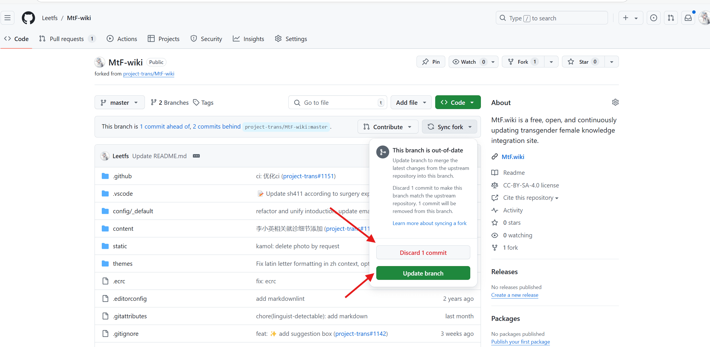 (Both buttons are effective. The first one updates to the latest version and discards your local commits, while the second updates to the latest version)